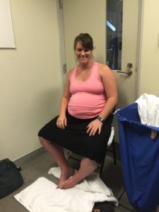 I walk in and yell out to our gorgeous Exercise Physiologist Bri, who’s manning the front desk. “hey Bri, my waters have broken in a big way, get me some towels’. She ushers me into the office, passes me about 10 towels and starts crying. Hahah!