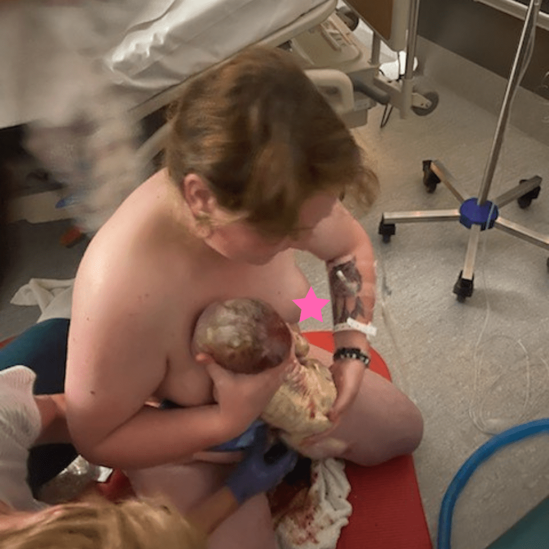My waters broke and again was asked to be checked to see if baby was okay and if they had to intervene. The pain associated with my sciatic on that bed was sooo bad but also probably a nice distraction! I could feel muscles I’ve never felt before getting a good bloody work out and so the waves were very strong and very regular. I blocked this examination out again and when they were done I had Kieran hold me over the bed with my legs and arms up. Lorraine my beautiful midwife who was to bring this baby into the world noticed another transition and asked if I felt the urge to push. Which I exclaimed YES.