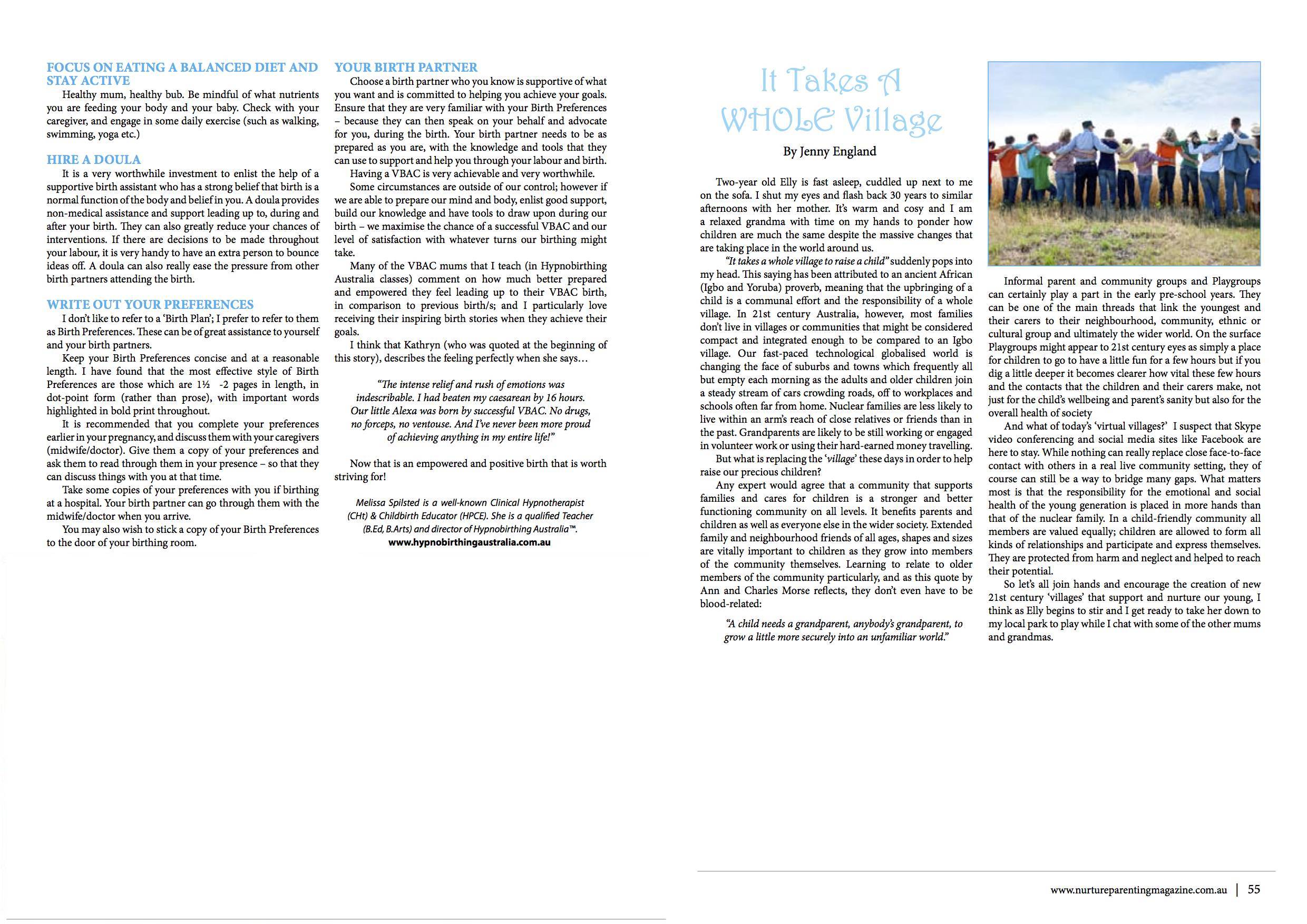 Click here to download the .pdf VBAC Article by Melissa Spilsted – Nurture Magazine or click on the following images (though, be sure to click on the 2nd page, too!)