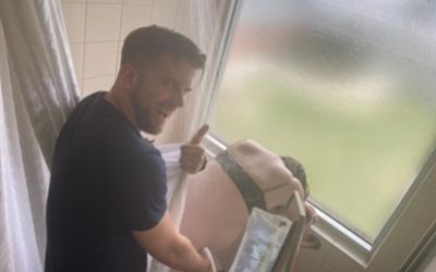 After a couple of hours, Melissa returned to the bed, and we kept going through mantras and calming techniques. Our midwife noted she was 8.5cm dilated, which strongly encouraged Mel to keep going. The feelings became even more intense, and Melissa nearly panicked, crying out due to the intensity – but our midwife helped her to remember to breathe that surge down towards our baby. Shortly after, Mel started feeling the occasional urge to push – Our doctor did say that we could start pushing in about an hour’s time, but as the urge became more intense and frequent, our midwife realised that this was happening much sooner than that. She managed to stand with me holding her, to help things along with gravity – and a very short time later, Mel started to feel the need to bear down, and she just kept breathing, and vocalising, until the baby was nearly there. She had a huge smile on her face when we could see the top of our baby’s head. A few short minutes later, Oscar was born at 8lb, 4oz. Melissa had delivered him in 8 hours.