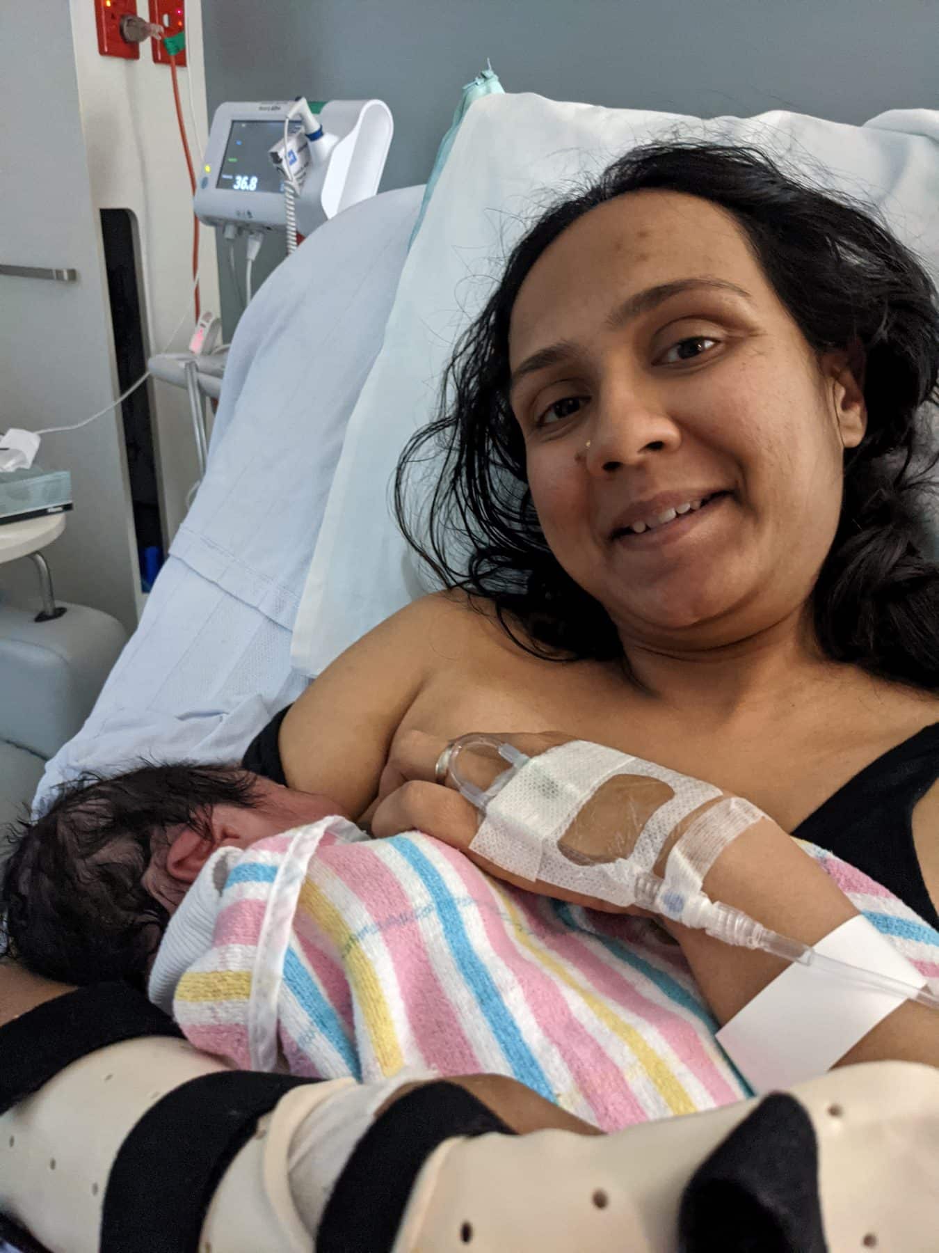 Attached pic of happy us! And me breastfeeding at first hour with a splint :-D.