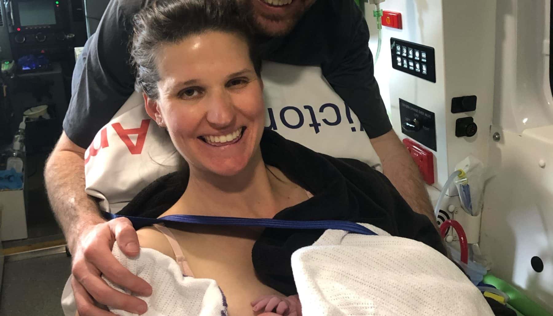 Sitting on the toilet became the only bearable position and when my mucus plug came out, my husband starting packing the car. As he printed his cheat sheet with tools and positive birth affirmations, my waters broke and I suddenly felt the urge to bear down. We knew it was too late to go anywhere and called 000.