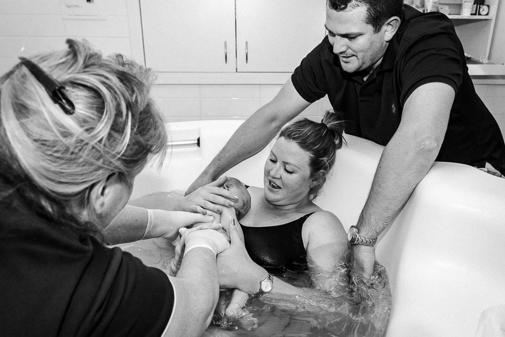 By 7pm the birthing bath was ready for me. As soon as I hopped in, the warm water instantly soothed any discomfort I had. It was amazing! The surges slowed but I welcomed the nice rest. I was feeling the full swing of my oxytocin hormone flowing through my body. I felt like I was floating on a cloud in my own little world. I moved about a little but felt most comfortable floating on my back. My breathing started to change during some intense surges not too long after getting in the bath. I didn’t notice this but my midwife did so started prepping for the final stage and told me to go with it if I feel the need to push. She’s had a lot of experience because she knew before I knew and next surge I was bearing down without even realising it. It is an incredible sensation, feeling my baby make his way down and out. Yes, its the most intense feeling ever experienced but at the same time so unique and amazing.