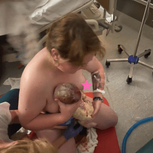 Finally bub was turned inside me and brought out into life threw my legs and I grabbed her up to feel her genitals and looked at Kieran and said “I don’t think I can feel a doodle, I think it’s a girl.”