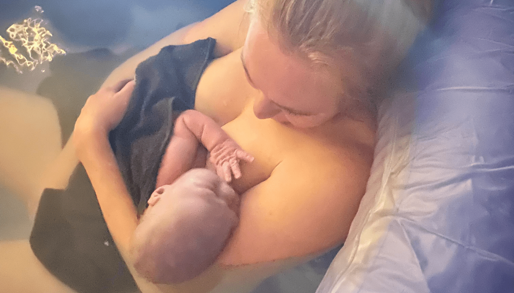 When I started to feel pressure my partner helped me into the birth pool and continued with anchor and soft touch. By this point it was incredibly intense but I also knew we were almost there so started allowing my body to really push rather than breathe through it, I could feel how hard my body was working! It felt like his head had been crowning for awhile and I heard Kieran say she could see a hand in the way and encouraged me to move where my body was telling me too and I instinctively moved my right leg forward, this was enough to help him get his arm up and out the way and encouraged me to reach down and feel him, I could feel his head and one arm/shoulder and with the next surge lifted him up and onto my chest. I could not believe he was here and I was holding him. I didn’t cry uncontrollably like I did with my first but the euphoria was no less, the oxytocin was flowing and I was on cloud 9. He was born at 2.17, less than 9 hours from when my waters had broken.