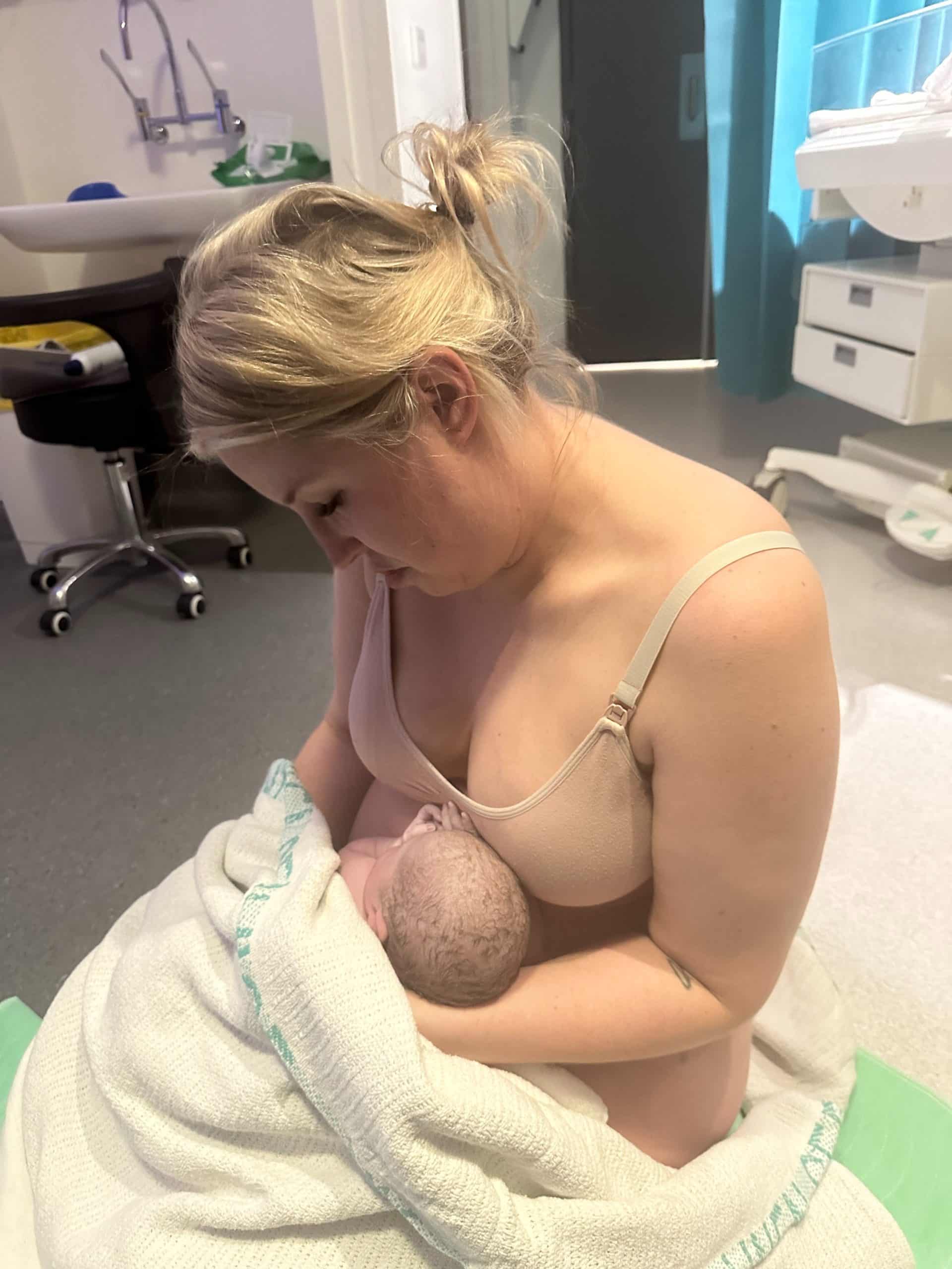 My husband didn’t register how close she was due to his experience in my previous births – he thought she was still hours away! Two midwives were heading out to get a coffee and came running over asking if I were Holly – they had just finished preparing my suite. It was a combined effort of my husband and 2 midwives to get me up to the Ward, as this point my legs wanted to collapse under me and my body just wanted to birth.