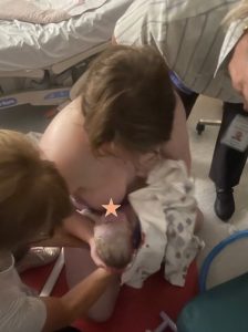 Finally bub was turned inside me and brought out into life threw my legs and I grabbed her up to feel her genitals and looked at Kieran and said “I don’t think I can feel a doodle, I think it’s a girl.”